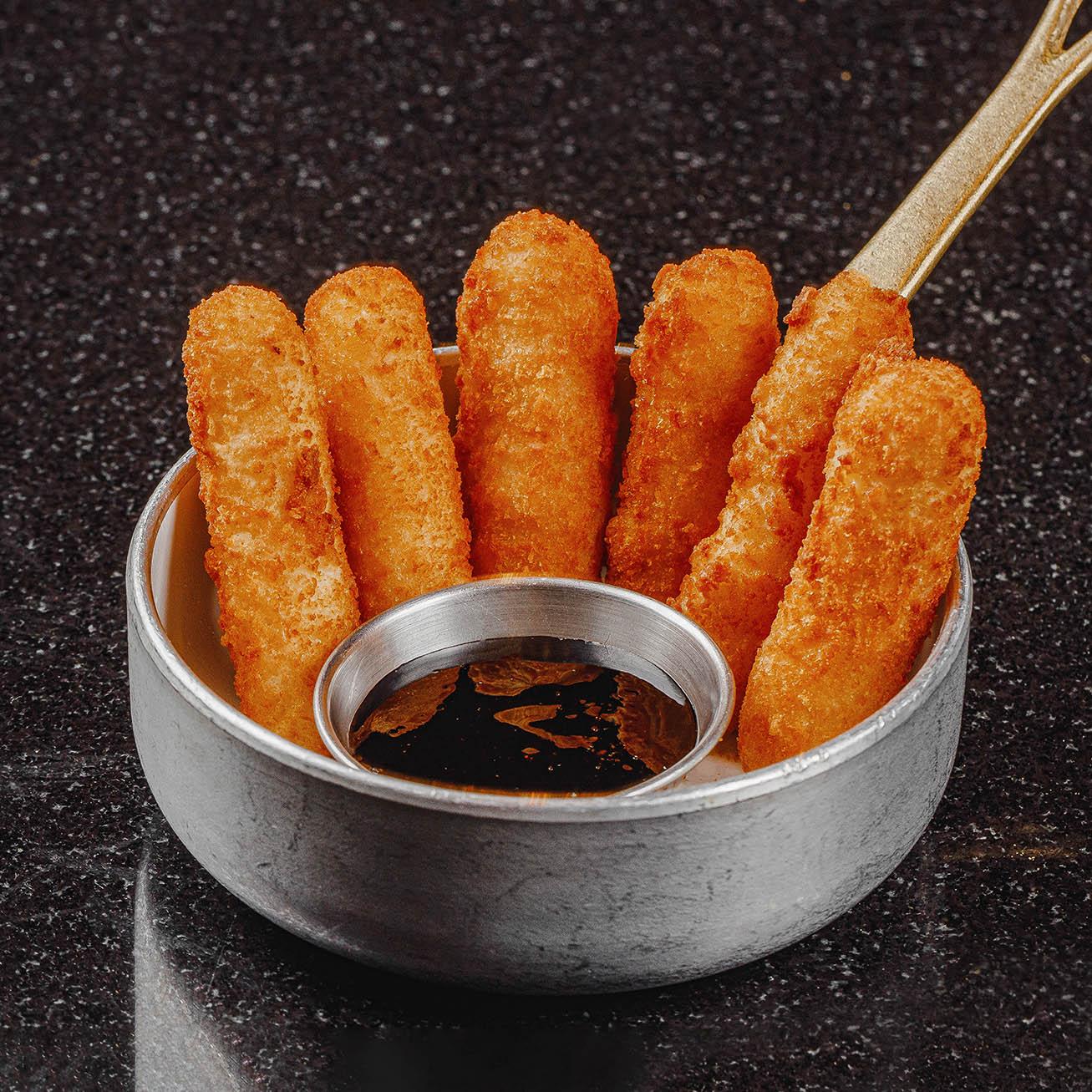 Хрустящие палочки из сыра моцарелла в панировке. Подаются с Ягодным соусом