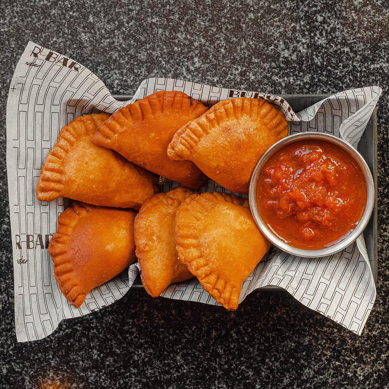 Мини чебуреки с мясом птицы, шт (ШУ-ШЕФ), Томаты свежие, Перец болгарский, Лук репчатый, Кинза свежая, Чеснок свежий, Специи («METRO Chef»), Сахар песок («aro»), Масло растительное подсолнечное («aro»), Соль пищевая поваренная («aro»)